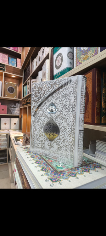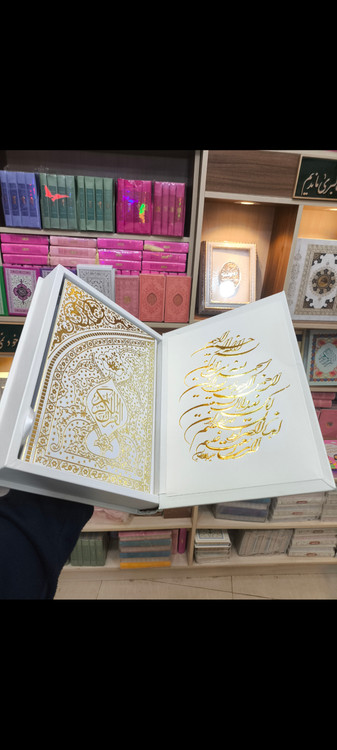 قرآن جعبه دار نفیس سفید مخصوص عقد خط عثمان طه صندوق دار