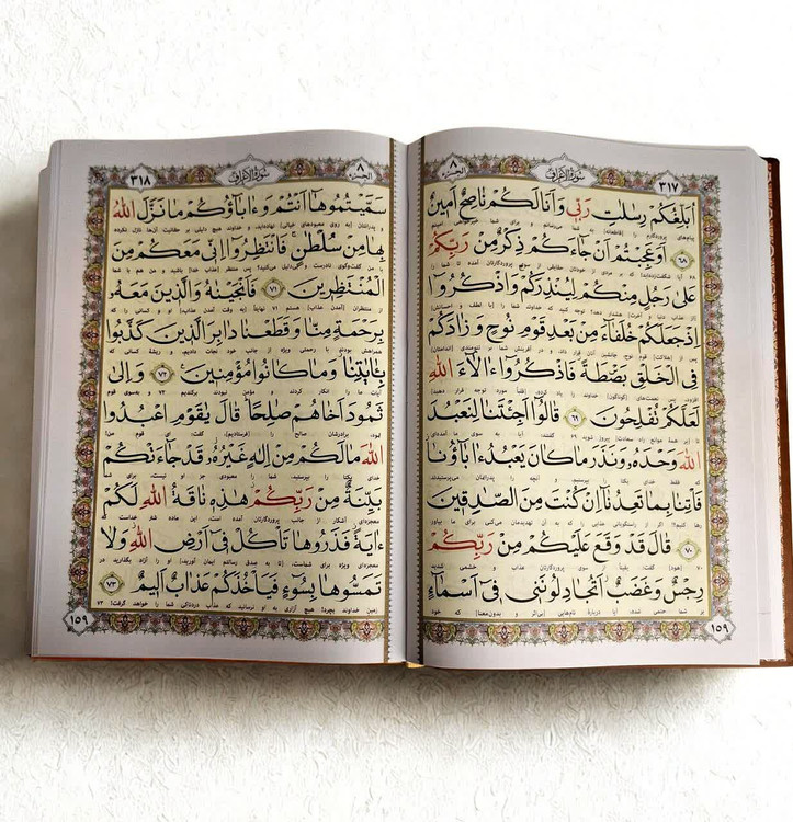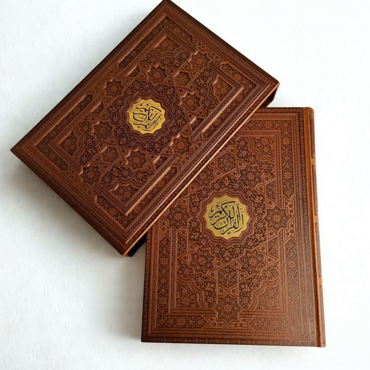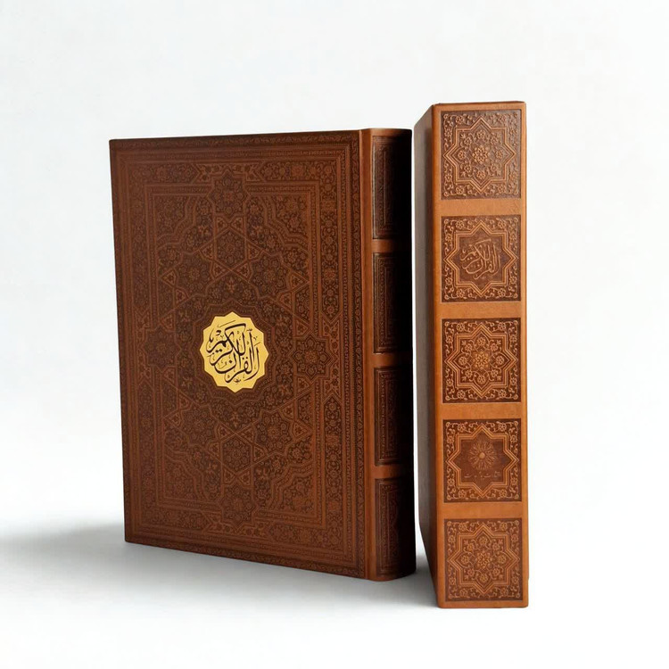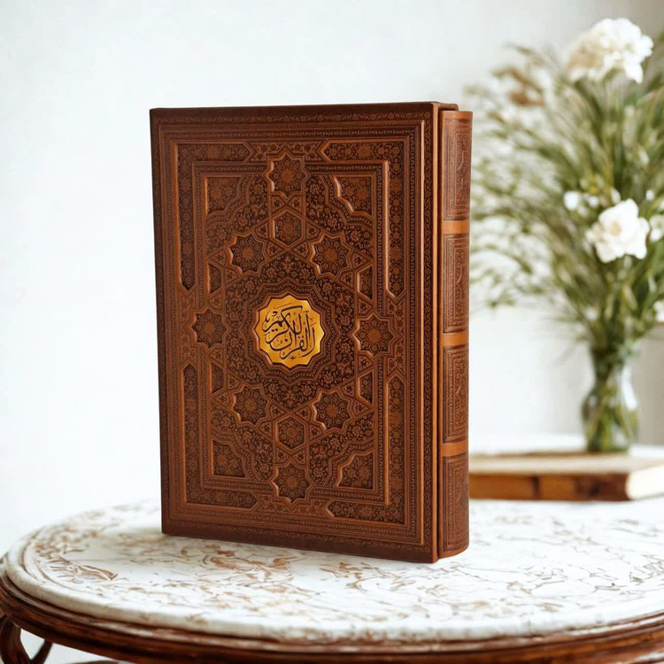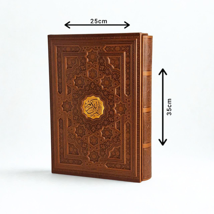 قرآن نفیس رحلی چرم قابدار کشویی خط اشرفی درشت خط چاپ چهار رنگ با ترجمه سایز35.25