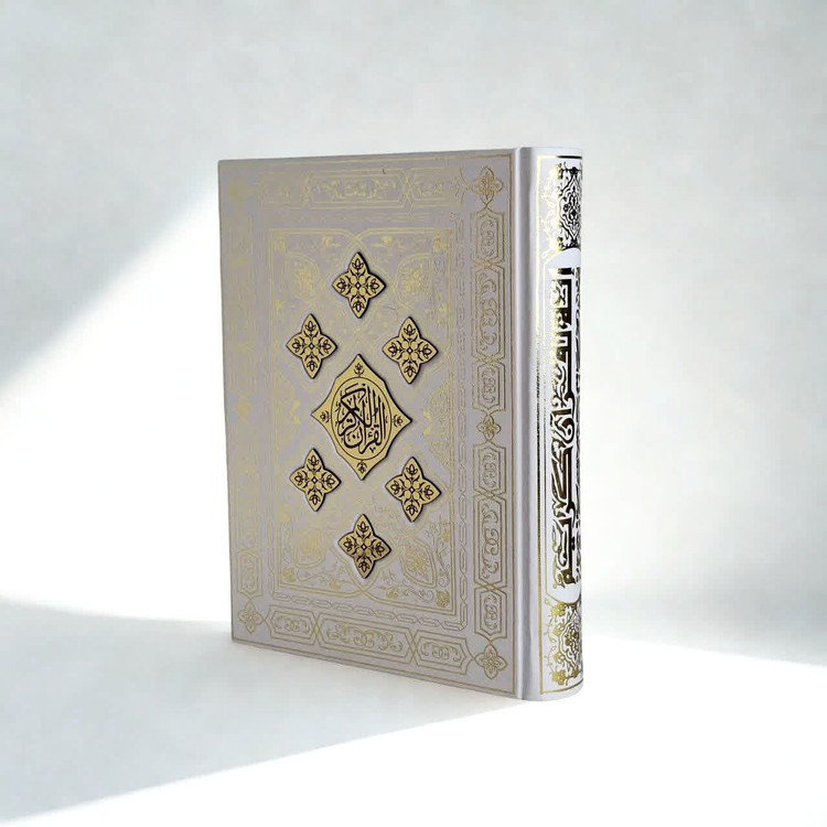 این قرآن زیبا با سایز وزیری و رنگ سفید شیک و جذاب، انتخابی خاص برای عروس و هدیههای معنوی است. همراه با قاب صندوقی محکم و زیبا، جلوهای فاخر و ماندگار دارد.9