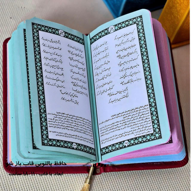 دیوان حافظ پالتویی قابدار (قاب باز شو)ترمو همراه با فالنامه چرم ترمو رنگی۱۸در۱۱