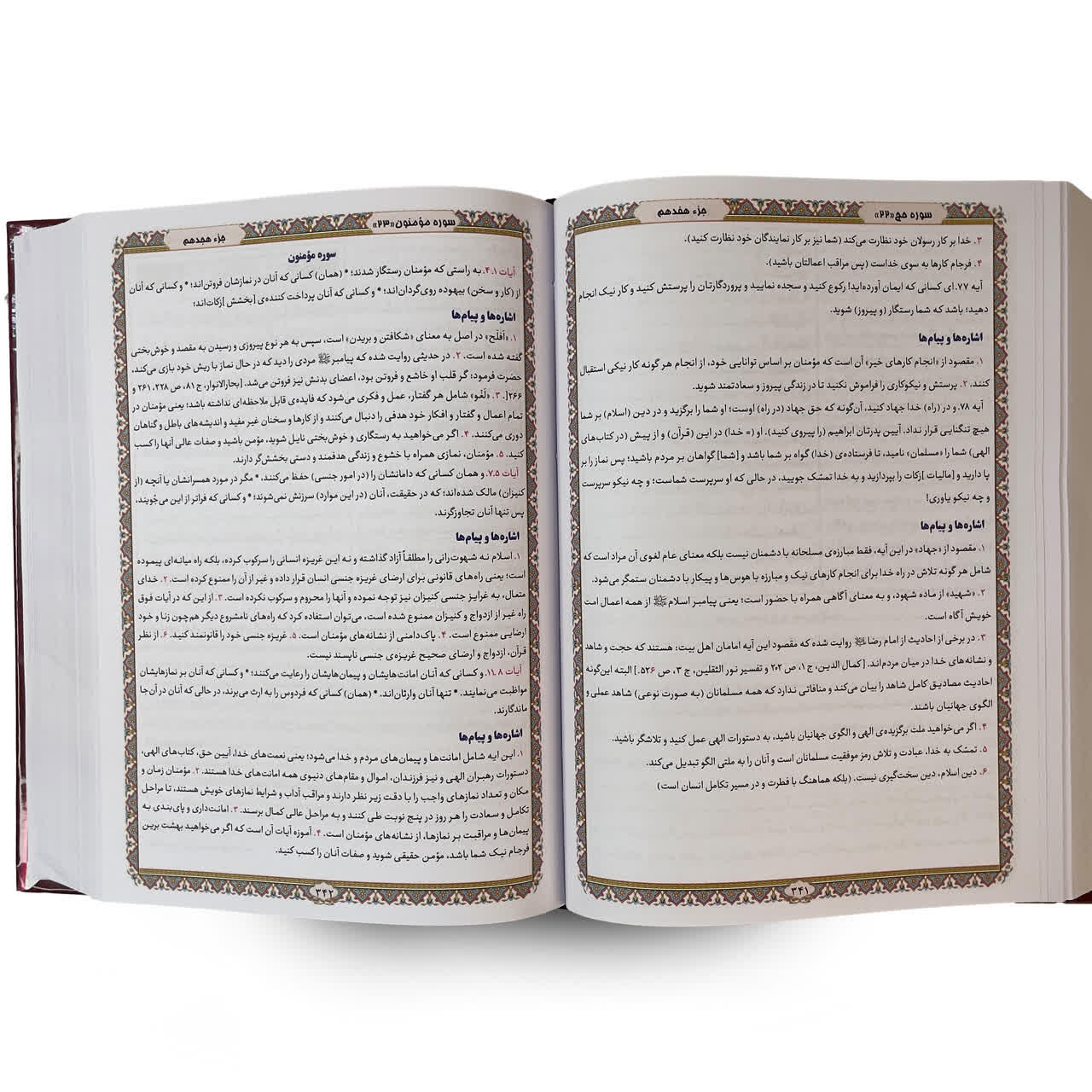 ✅تفسیر کل قران کریم در یک جلد ودر ۱۲۳۲ صفحه در سایز وزیری بصورت چهار رنگ طراحی شده تا هم چشمنواز باشد و هم همراهی آرام در لحظات انس با قرآن.