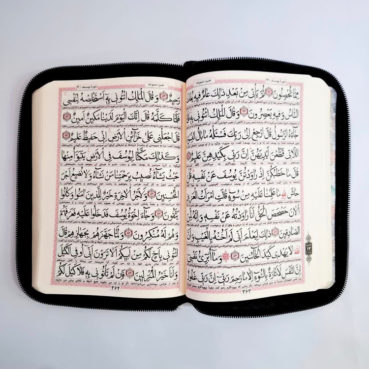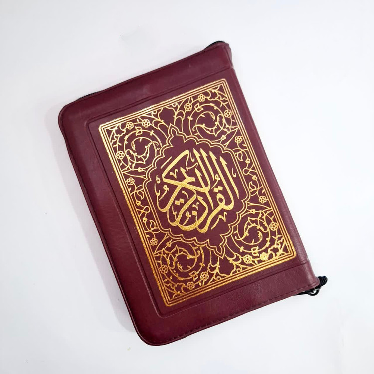 قرآن کیفی زیپی نیریزی خط درشت کاغذ پوست پیازی آلمانی ترجمه زیر سایز جیبی 12*17