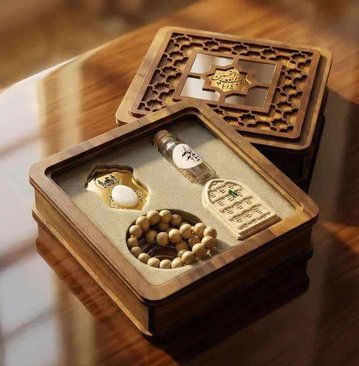 پک متبرکات عتبات نگین حرم امام حسین مهرو تسبیح تربت و خاک تربت