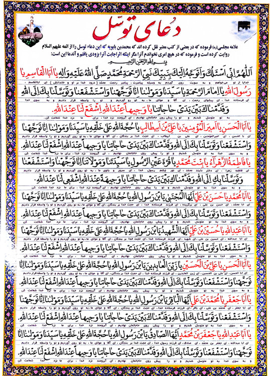 دعای توسل تک برگی a4پرسی لمینت شده خط درشت و خوانا